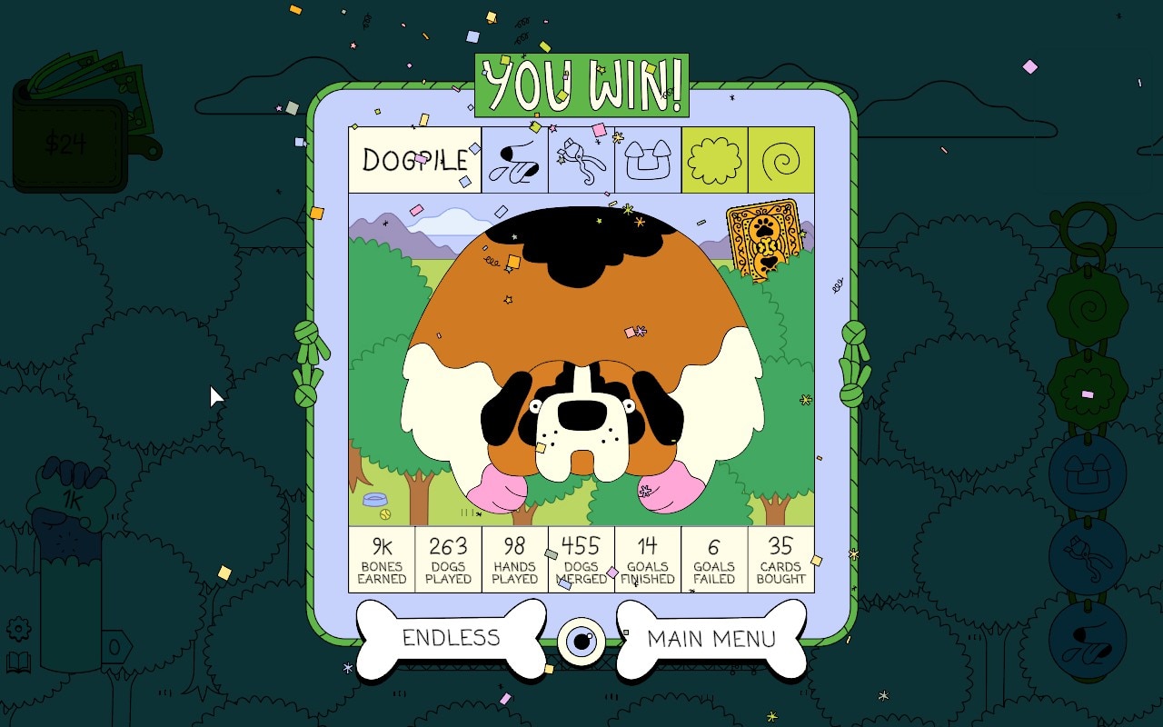 Dogpile – карточный рогалик, в котором вся магия строится вокруг эволюции собак: из маленьких и милых питомцев со временем вырастают по-настоящему внушительные создания. Каждая карта представляет пса с собственным характером и особенностями – от застенчивых и вялых до дерзких и эффектных. Эти качества напрямую влияют на игровой процесс и заставляют по-новому подходить к формированию колоды. Глубину механикам придают специальные жетоны, служащие инструментом тонкой настройки. Они способны радикально менять поведение собак, усиливать их сильные стороны или открывать неожиданные эффекты.