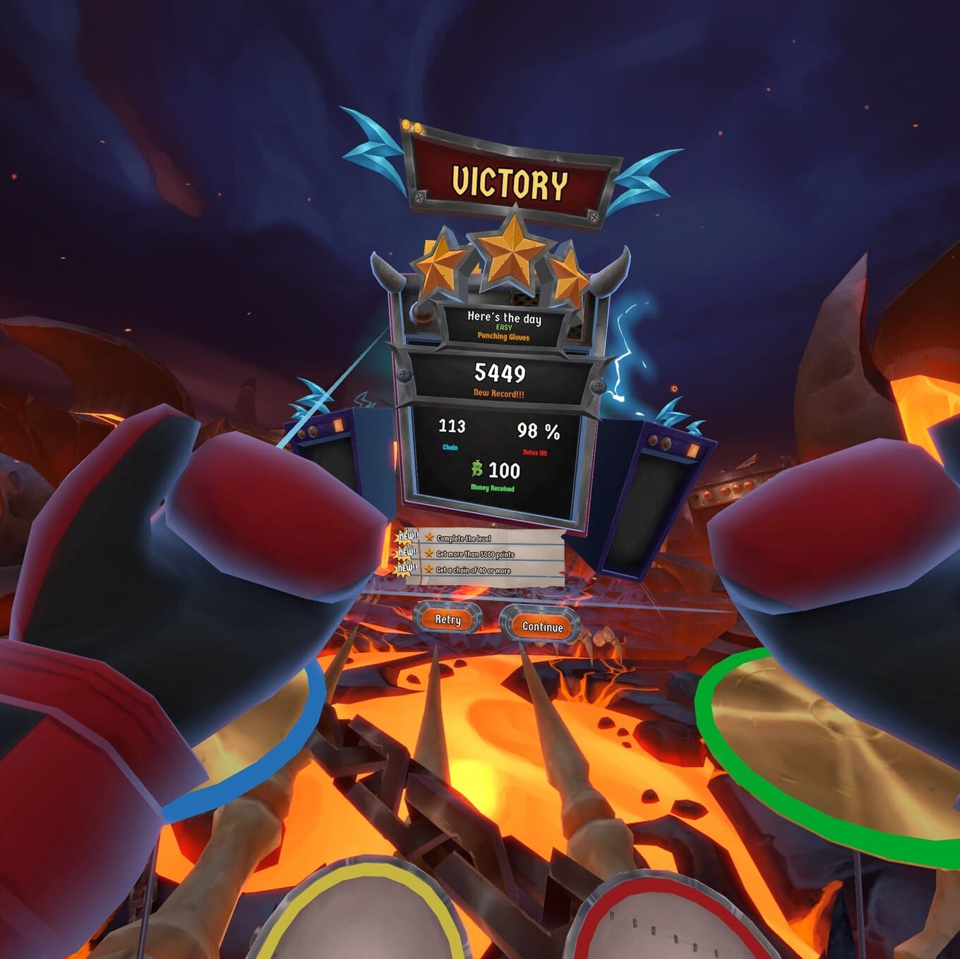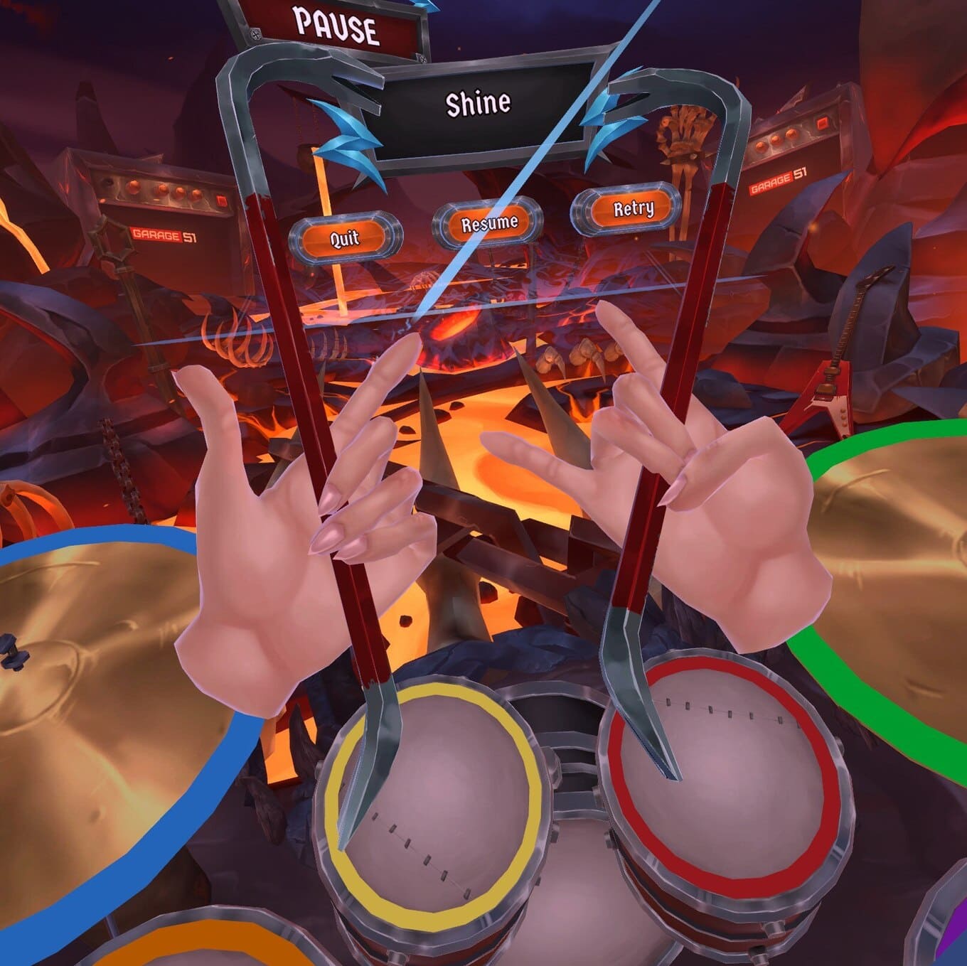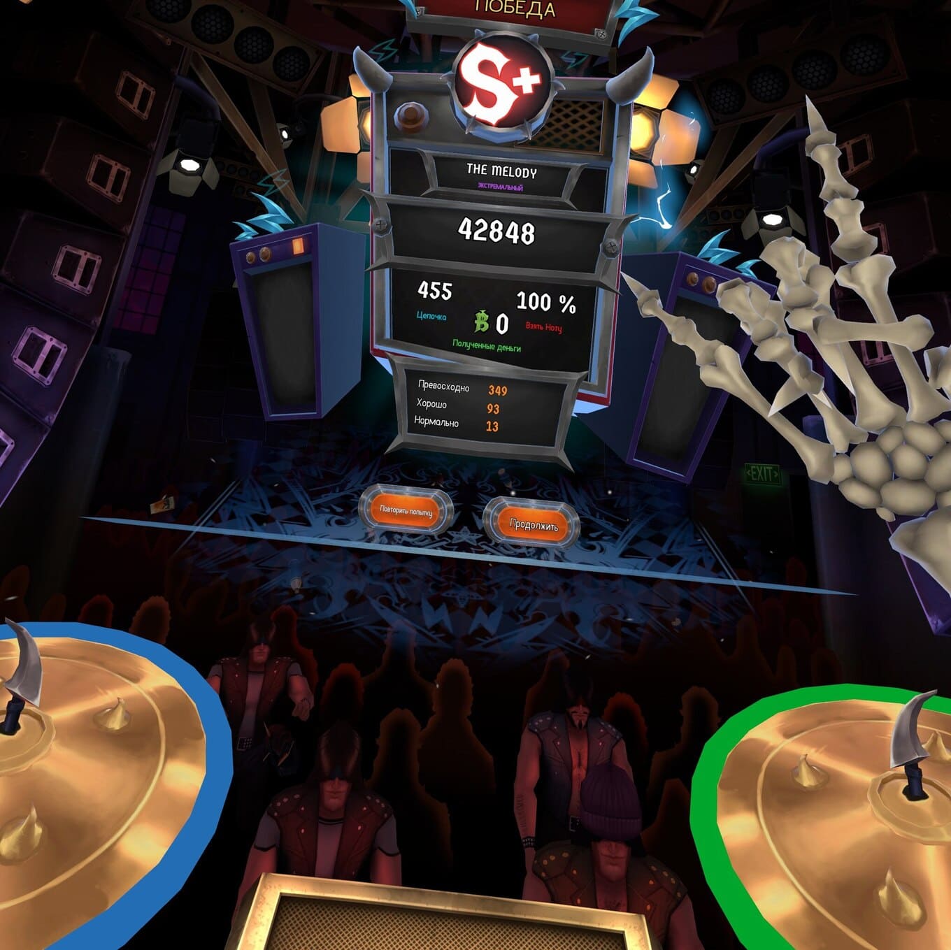 Drums Rock – динамичный VR-проект, в котором каждый может почувствовать себя рок-ударником на сцене, окруженной оглушительными риффами и вспышками света. Надев гарнитуру виртуальной реальности, игрок оказывается за полноценной ударной установкой и вступает в музыкальное противостояние с ордами демонических созданий. Победа зависит не от грубой силы, а от точности ритма и умения идеально попадать в такт во время исполнения мощных композиций.