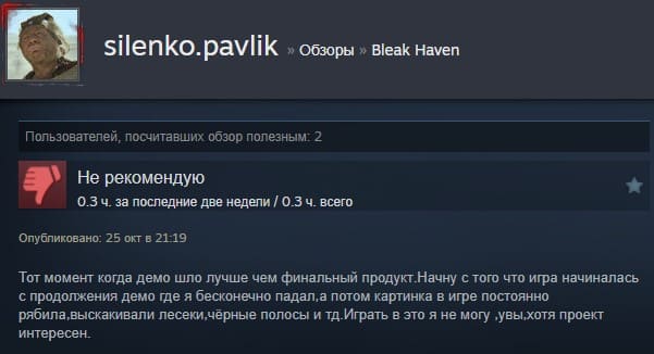 Bleak Haven – психологический хоррор, рассказывающий о человеке, решившем бросить вызов собственным страхам и силам, скрытым за гранью человеческого понимания. Протагонист, Тайлер, отправляется на покрытый туманом остров в поисках брата, бесследно исчезнувшего при загадочных обстоятельствах. Однако это место давно утратило связь с внешним миром и превратилось в обитель древнего культа, поклоняющегося безымянному божеству, чье присутствие ощущается в каждом шорохе и отблеске пламени.