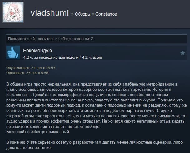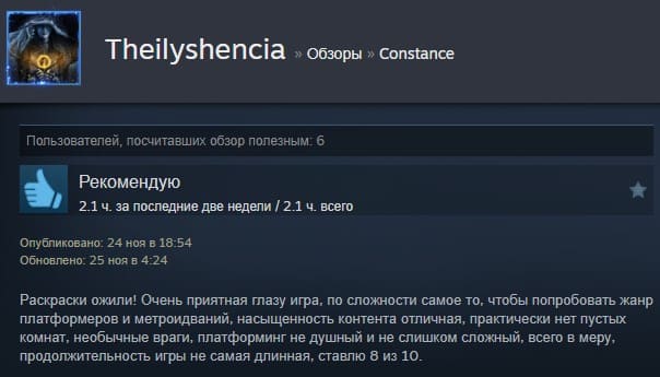 Constance – экшен-платформер о художнице, потерявшей вдохновение и оказавшейся лицом к лицу со своими разрушительными чувствами. Героиня по имени Констанс попадает в причудливый, но постепенно угасающий мир собственной души. Ее единственным оружием становится волшебная кисть, с помощью которой она сражается с искажёнными воплощениями страхов, сомнений и творческих блоков – существами, родившимися из глубин ее подсознания.