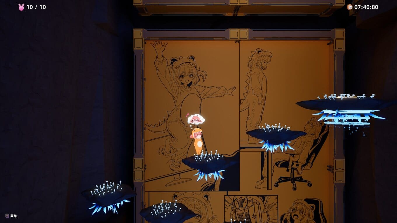 - По сюжету игроки оказываются в цифровом мире, куда коварный кибердемон заточил маленькую ведьму, облаченную в пижаму динозавра;