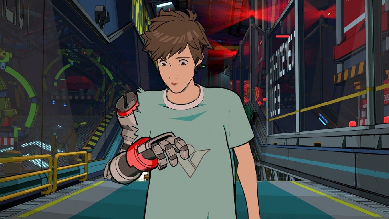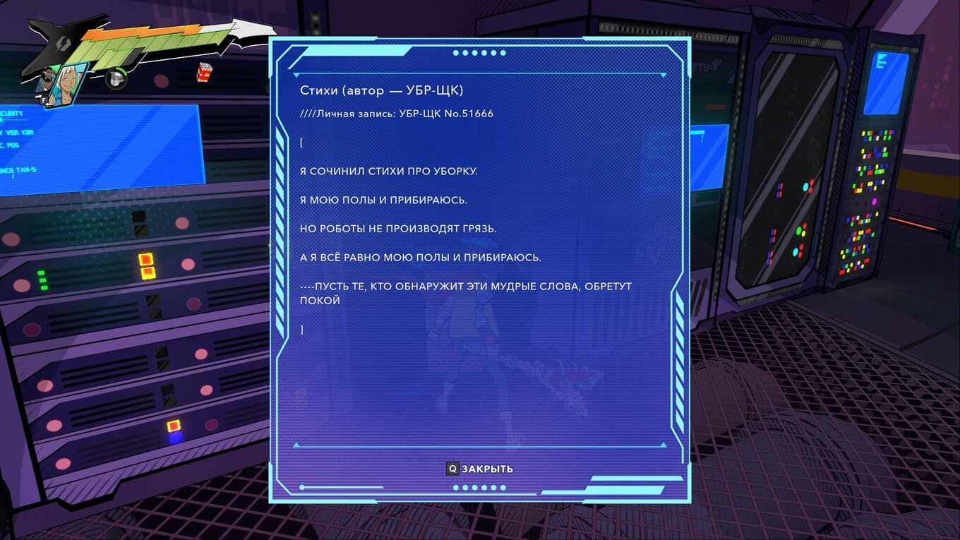 - Спасаясь от своих создателей, парень натыкается на небольшого робокота 808 – проводника, через которого с ним связывается таинственный хакер;