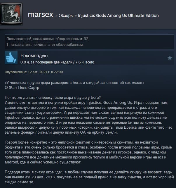 Injustice: Gods Among Us – файтинг во вселенной DC, где культовые супергерои и злодеи сталкиваются в мрачной альтернативной реальности. Игра сочетает кинематографичный сюжет с динамичными боями, превращая знакомую комикс-вселенную в арену для жестокого противостояния. История начинается с трагедии: Джокер хитро манипулирует Суперменом, заставляя его совершить роковую ошибку, которая навсегда меняет героя. Потеряв близкого человека и моральные ориентиры, Супермен отказывается от прежних идеалов и становится диктатором, устанавливая жесткий контроль над миром. В ответ Бэтмен собирает подпольное сопротивление, стремясь остановить бывшего союзника и вернуть баланс.