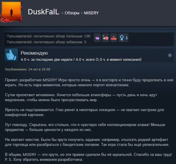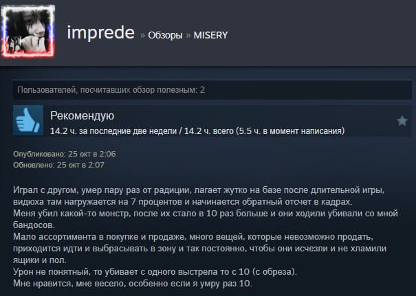 Отзывы об игре MISERY: