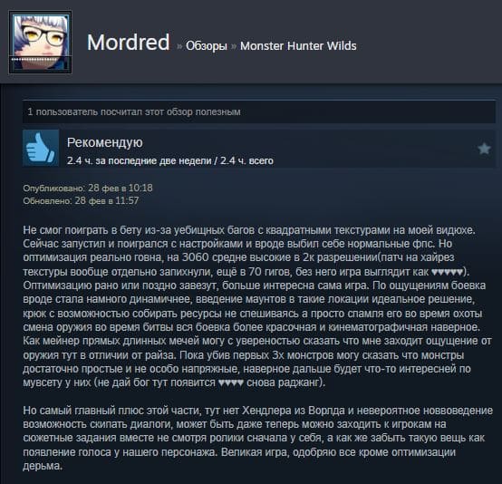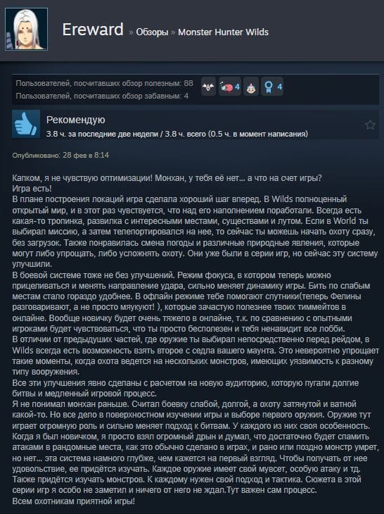 Отзывы об игре Monster Hunter Wilds: