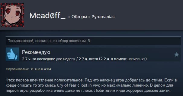 Pyromaniac – хоррор от 1-го лица, в котором вы берете под управление Николаса, двадцатилетнего молодого человека, внезапно оказавшегося в мертвом, чуждом городе. Узкие улицы, бетонные панельные дома постсоциалистической эпохи, пустые подземные переходы и стены, исписанные граффити, создают ощущение тревожной безысходности. Кажется, что город заброшен, но постепенно вы понимаете – он живет собственной странной жизнью.