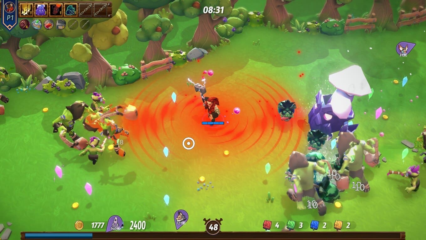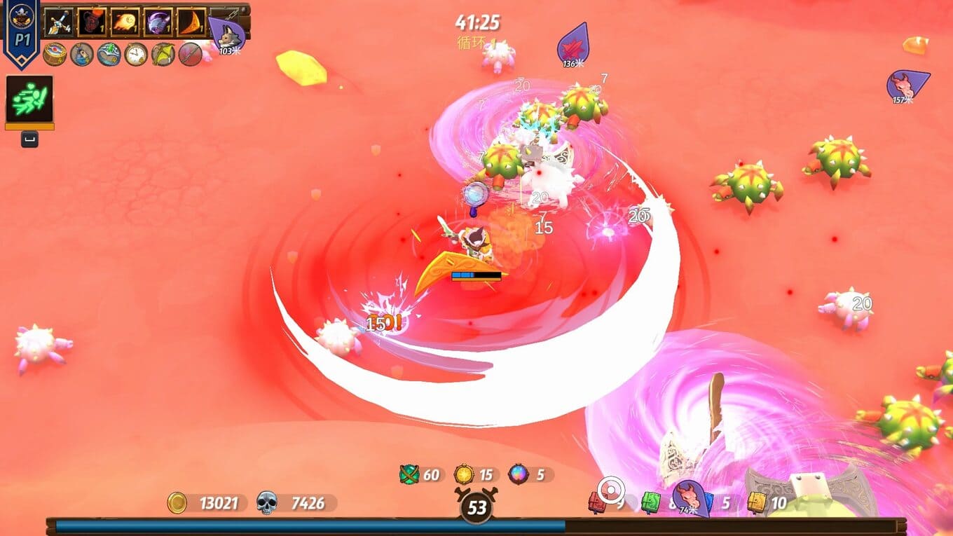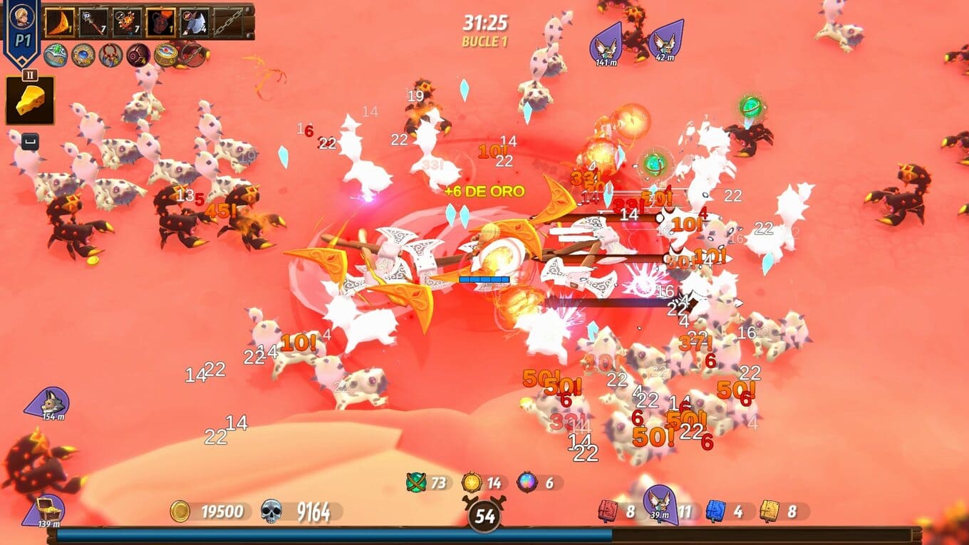 - Арены сменяются одна за другой, сотни врагов обступают со всех сторон, и лишь постоянное развитие героя помогает выжить в этом вихре сражений;