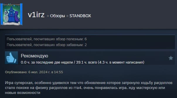 - Это небольшой, но увлекательный эксперимент, сосредоточенный на реалистичности физики и поведении персонажа;