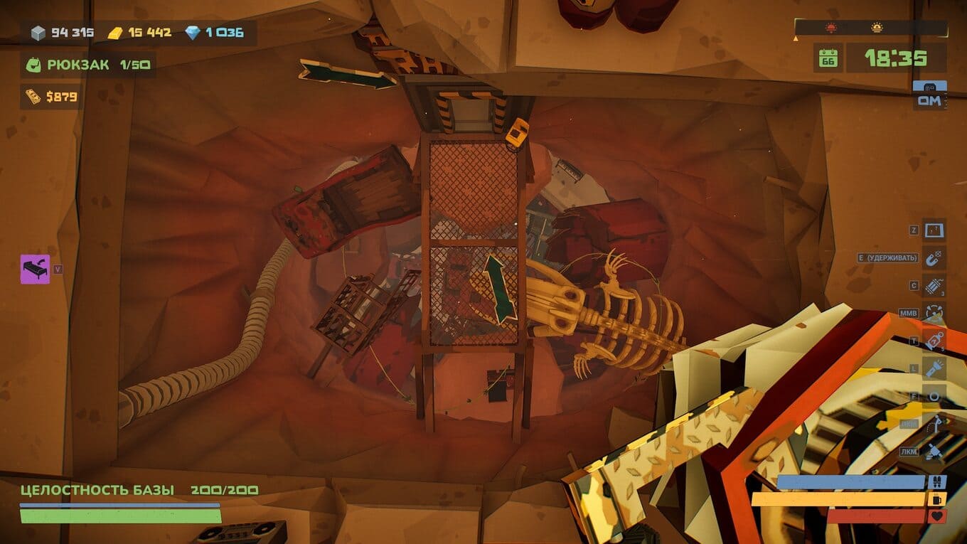 - Днем предстоит спускаться под землю в поисках редких ресурсов и деталей. С каждым вылазом инструменты становятся мощнее, позволяя проникать глубже и добывать более ценные материалы;