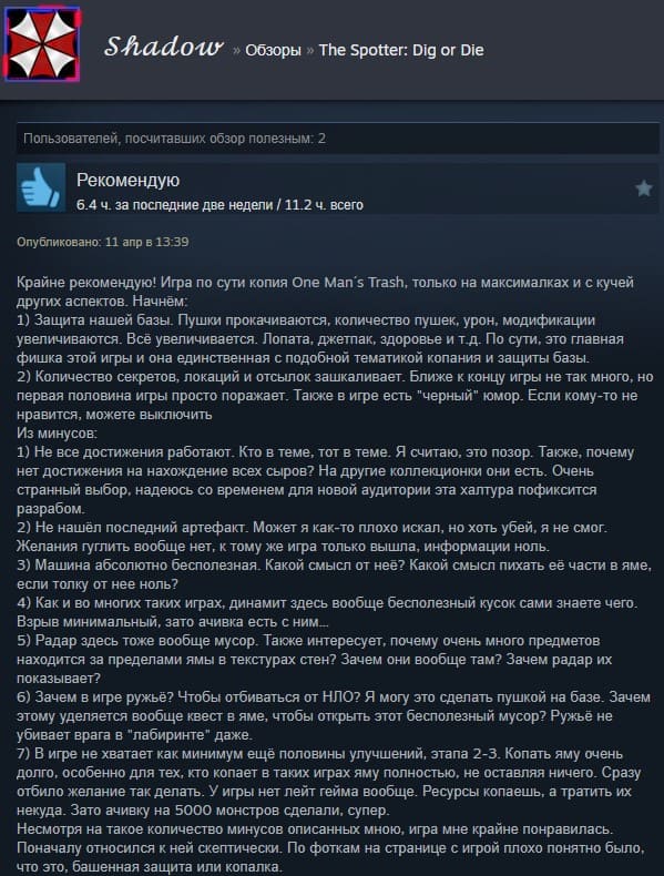 Отзывы об игре The Spotter: Dig or Die: