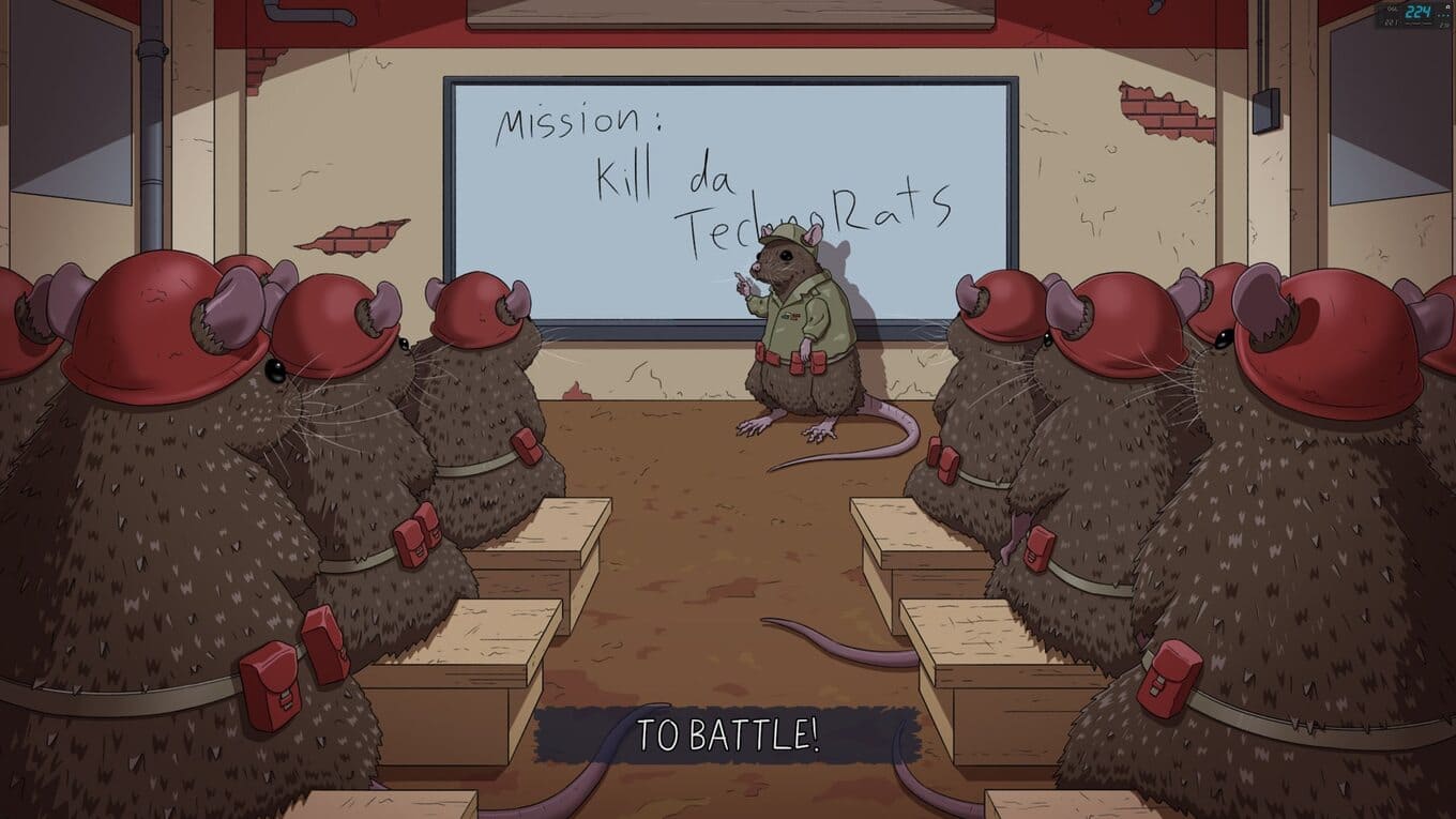 WAR RATS: The Rat’em Up погружает игроков в эпичную Великую Крысиную Войну, где каждая битва – борьба за выживание Ратопии. В мире, населенном исключительно крысами, ТехноКрысы – единое киберсознание механических грызунов, жаждущих превратить все живое в металл и подчинить себе органическую жизнь. Игроку предстоит вести схватки боковой прокрутки, объединяя усилия с наемными отрядами, чтобы выбить противника с его территорий и захватить ключевые плацдармы.