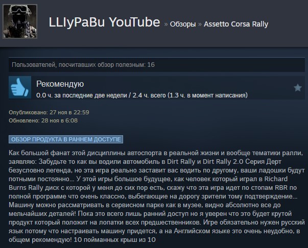 Отзывы об игре Assetto Corsa Rally: