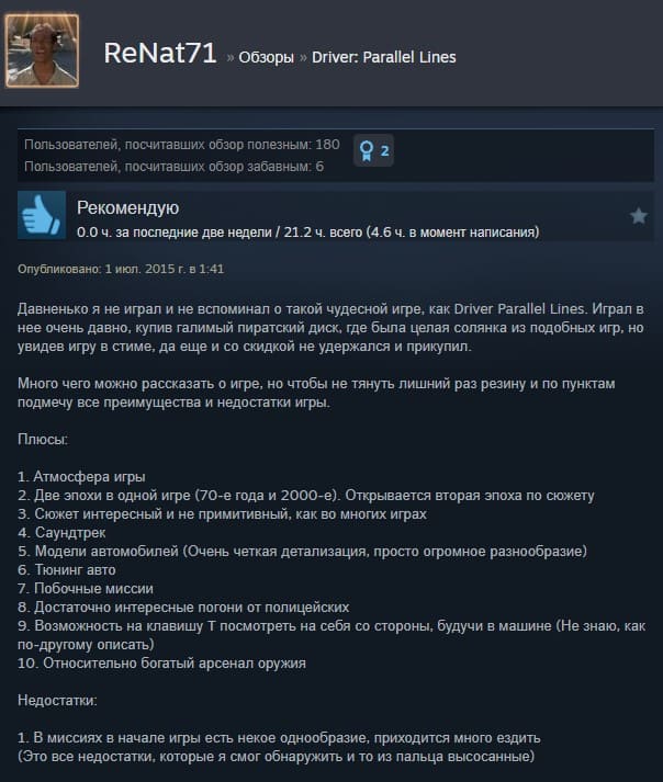 Отзывы об игре Driver Parallel Lines: