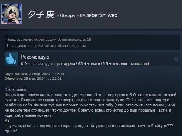 Отзывы об игре EA SPORTS WRC: