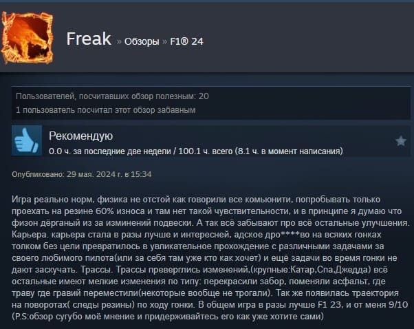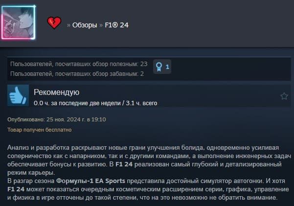 Отзывы об игре F1 24: