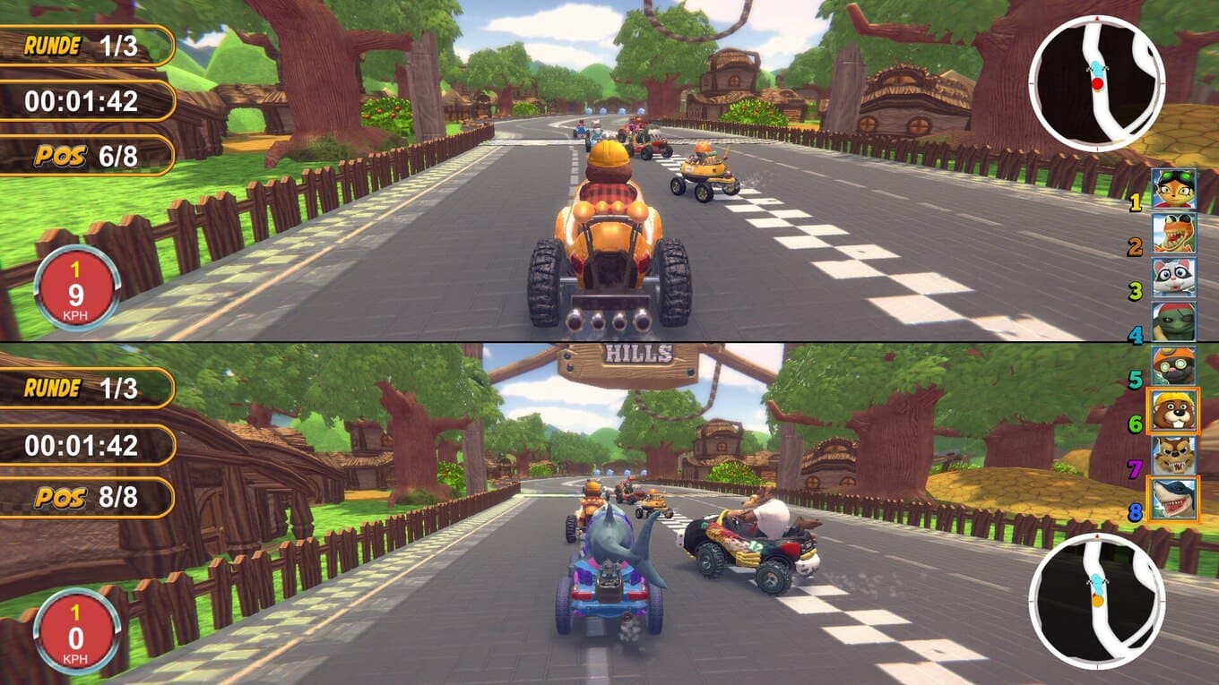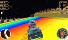 Renzo Racer – аркадная гонка в мультяшном стиле, где за рулем необычных машин оказываются харизматичные антропоморфные звери. Вас ждут безумные заезды по трассам, полным неожиданных ловушек, опасных поворотов и разрушительных препятствий. Здесь мало просто прийти первым – важно уметь мешать соперникам, использовать окружение в своих интересах и любой ценой удержаться в гонке. Игровой процесс требует молниеносной реакции и постоянной концентрации. На выбор доступно 16 оригинальных гонщиков, каждый со своим транспортом, особыми способностями и ярким дизайном.