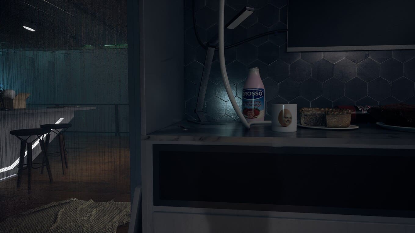 - Действие частично разворачивается в его квартире, расположенной в киберпанковском мегаполисе, залитом неоновыми огнями и непрерывным дождем;