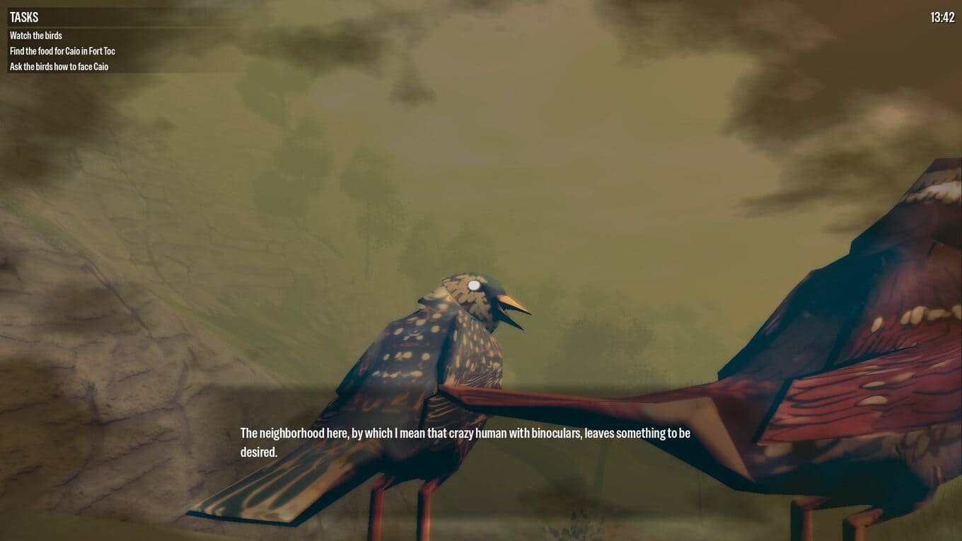 Birds Watching – игра про наблюдение за птицами, одновременно являющаяся напряженным психологическим проектом, где внимательность становится вопросом выживания. Игрок оказывается втянут в процесс пристального изучения окружающего мира. Через линзы бинокля привычные силуэты пернатых выглядят безобидно, но очень скоро в их поведении начинают проявляться тревожные несоответствия. Незаметные на первый взгляд детали складываются в пугающие закономерности, а спокойствие уступает месту нарастающему внутреннему напряжению.