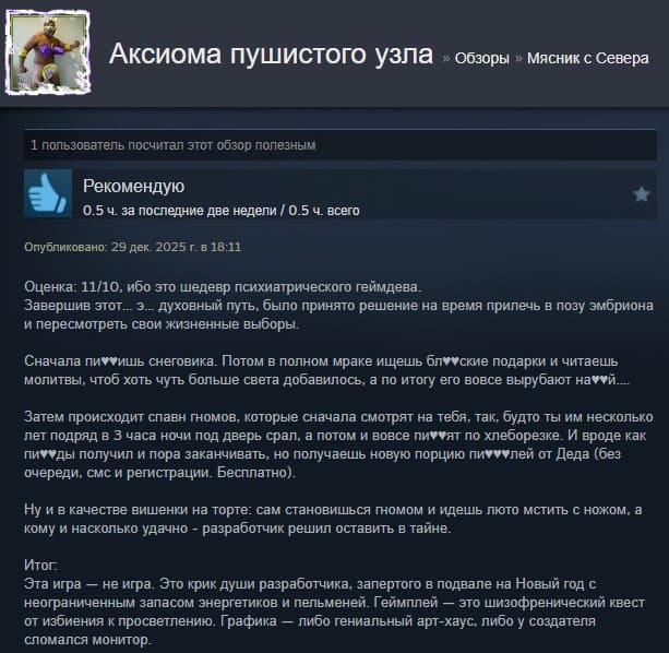 Butcher of the North – извращенная версия знакомой с детства рождественской легенды, превращенной в зловещий хоррор. Вместо уютного северного убежища игрок оказывается в проклятом месте, где праздничные огни освещают следы жестокой резни, а исковерканные мелодии рождественских песен звучат как траурный реквием. Здесь больше нет доброго волшебства: его место занял Северный Палач – жуткая фигура в окровавленном красно-белом наряде. Его мешок хранит не подарки, а свидетельства ужаса.