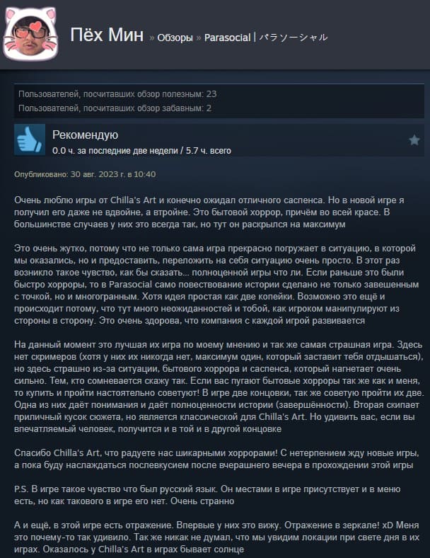 Отзывы об игре Chilla's Art: Parasocial:
