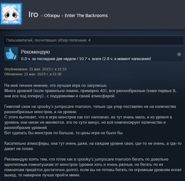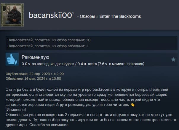 Отзывы об игре Enter The Backrooms: