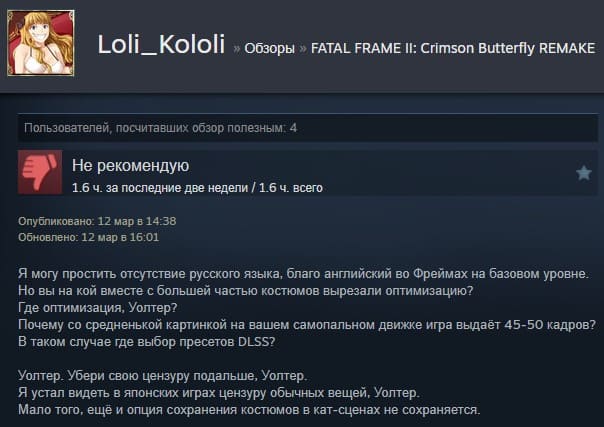 Отзывы об игре Fatal Frame 2: Crimson Butterfly Remake: