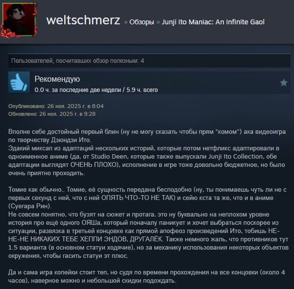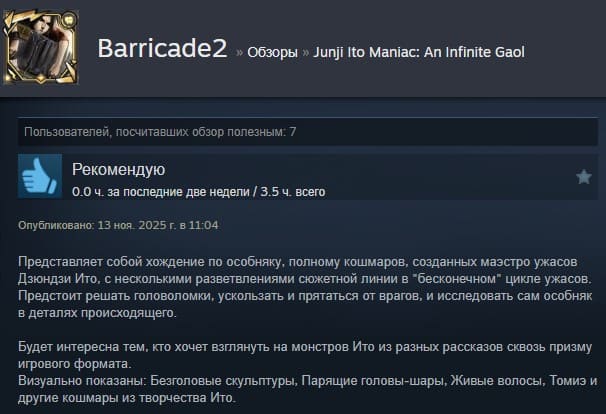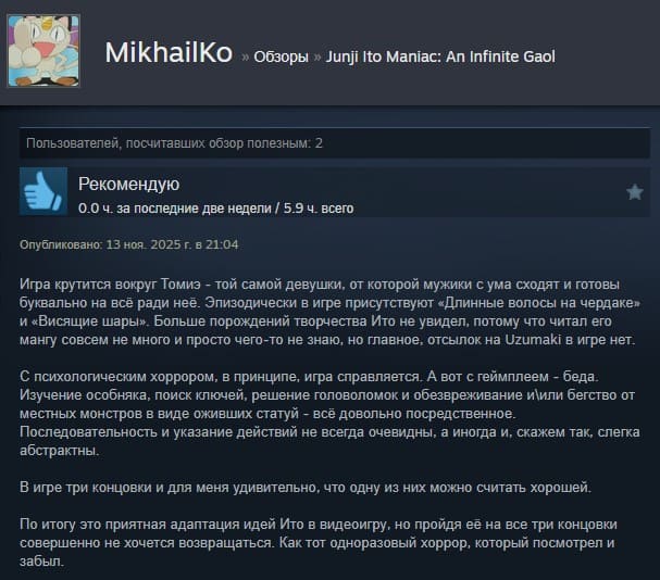 Отзывы об игре Junji Ito Maniac: An Infinite Gaol: