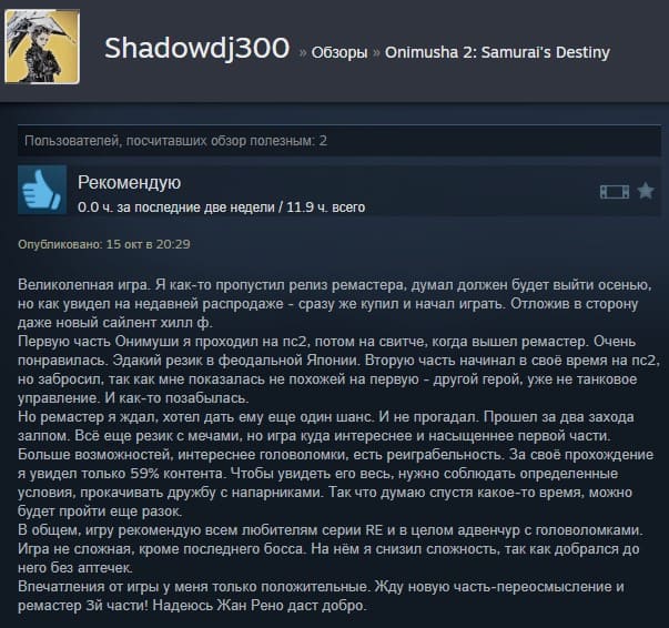 Отзывы об игре Onimusha 2: Samurai's Destiny:
