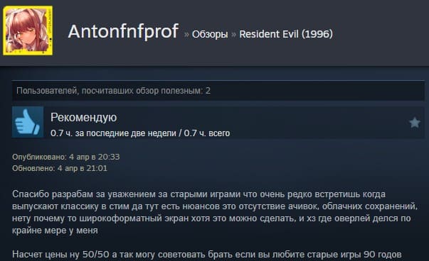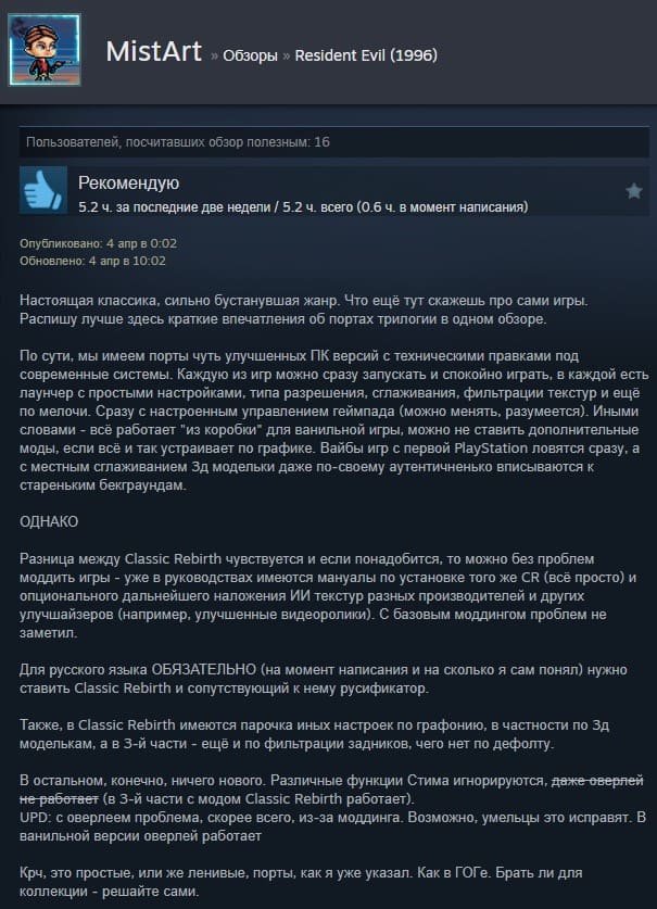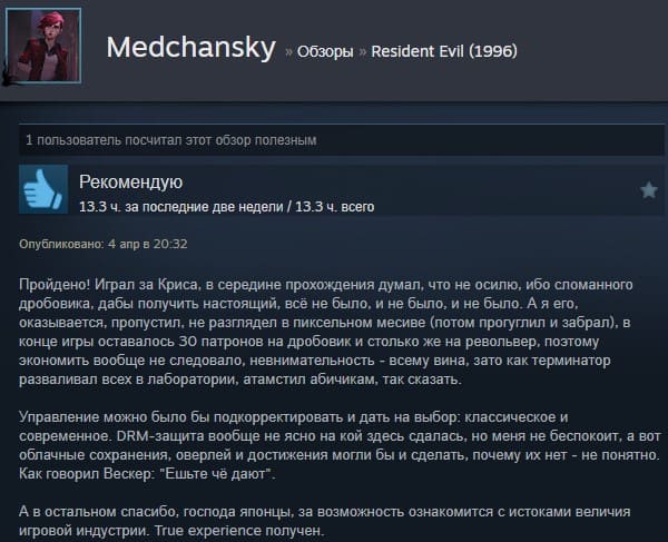 Отзывы об игре Resident Evil (1996):