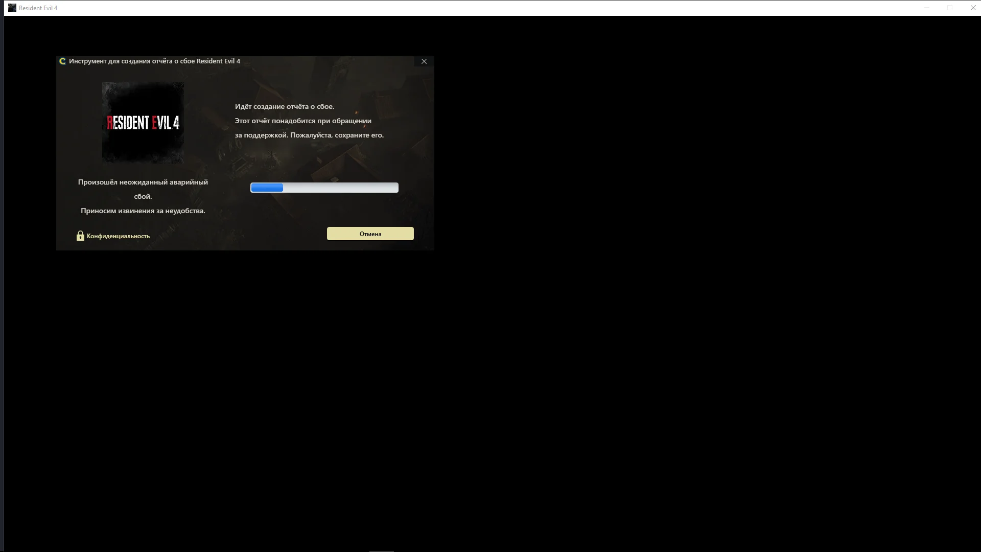 Скорее всего, конфликт с программами подсветки периферии (Razer Synapse, iCUE, Logitech G HUB) или оверлеями (Discord, MSI Afterburner, GeForce Experience). Закройте все такие программы через системный трей, снимите задачу с зависшего процесса re4.exe в диспетчере и запустите игру снова. Если не помогло - удалите файл local_config.ini в папке с игрой и на Windows 11 примените crackfix (amd_ags_x64.dll).
