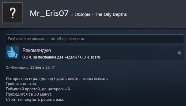 Отзывы об игре The Oily Depths: