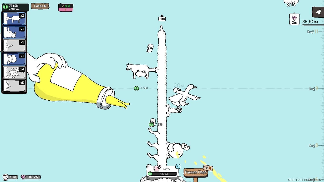 Tingus Goose – смесь экономической стратегии и медитативной головоломки, облеченная в форму сюрреалистичного «живого» механизма. Игра строится вокруг непрерывного производства прибыли, но делает это через столь странные и забавные процессы, что происходящее напоминает ожившую инсталляцию в духе Руба Голдберга. Центральный объект – громадное гусиное древо, с которого непрерывно срываются младенцы, играющие роль основного ресурса. Они скачут, катятся и отскакивают по конструкции, а игрок размещает на их пути Цветки – особые узлы, превращающие любые контакты в денежные всплески.