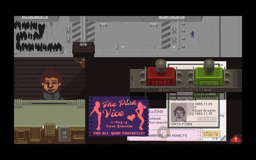 - В Papers, Please используется стильная пиксельная графика, однако атмосферу тоталитарной бюрократической машины игра передает отменно.