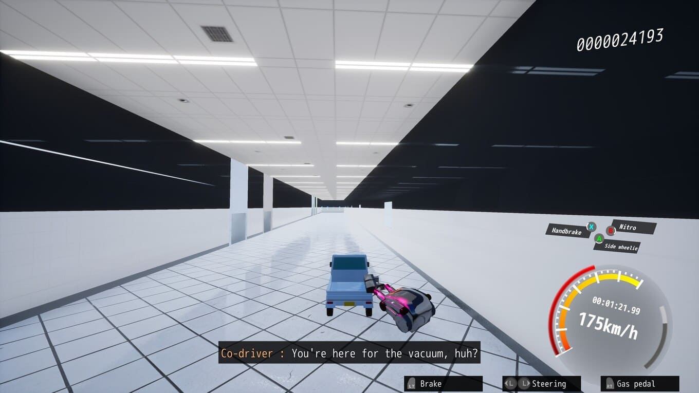 DriveCrazy – динамичная аркада, где игроку предстоит управлять компактным грузовиком, мчащимся сквозь разрушенные до основания ландшафты постапокалиптической Японии. Мир вокруг рассыпается на глазах: с неба летят ракеты, здания обрушиваются, а за машиной неотступно следуют загадочные существа. Чтобы выжить в этом хаосе, необходимо не только вовремя ускоряться, но и использовать нестандартные маршруты – включая движение по стенам и другим вертикальным поверхностям. Разрушение элементов окружения вроде заборов, деревьев и опор приносит бонусы, пополняя запас нитро и позволяя вырываться вперед в самые напряженные моменты.