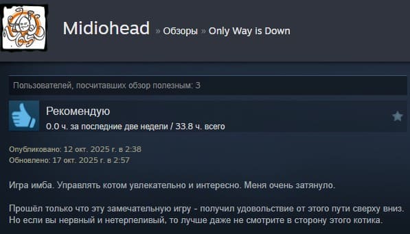 Only Way is Down – игра, где геймеры возьмут под контроль ловкого, но крайне неудачливого кота, который по воле случая оказывается на вершине недостроенного небоскреба. Заснув среди стройматериалов, пушистый герой просыпается там, где любой неверный шаг может стать последним. Единственный выход – двигаться вниз, преодолевая опасности многоуровневой городской стройки. Геймплей строится вокруг напряженного вертикального спуска. Вам предстоит аккуратно прокладывать путь через балки, шаткие леса, подвижные краны и недостроенные этажи.