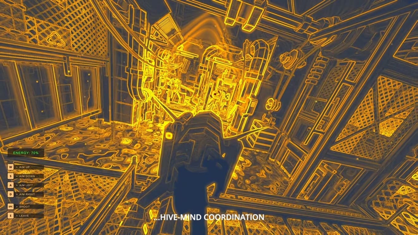 - Игрок управляет этим существом, преодолевая технологические обломки и препятствия, похожие на зыбучие болота.