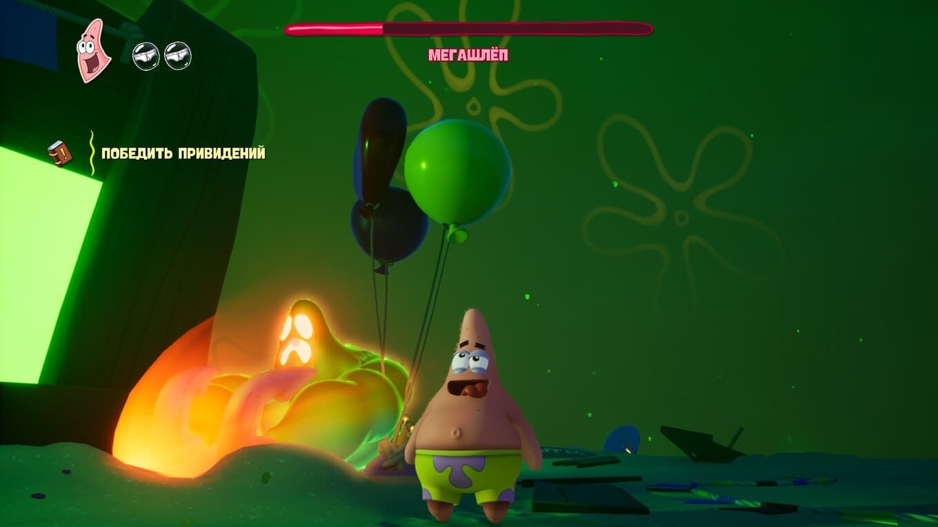 - Их столкновение приводит к тому, что мир заполняет бурлящий призрачный хаос, грозящий поглотить весь Бикини Боттом;