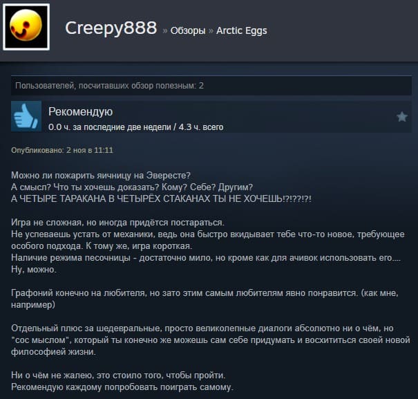 Arctic Eggs – приключение, переносящее игрока в необычный уголок далекой Антарктики – высокотехнологичный город, живущий по собственным кулинарным законам. Здесь мороз не просто обжигает кожу, он формирует ритм жизни, привычки и даже культуру питания. Вам предстоит примерить роль мастера-готовщика, чья работа – обеспечивать жителей пищей и удовлетворять их весьма специфические запросы.