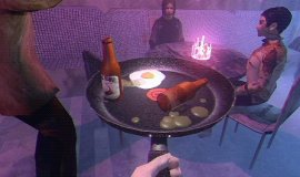 - Игровой процесс строится вокруг, казалось бы, простой задачи – управления сковородой;