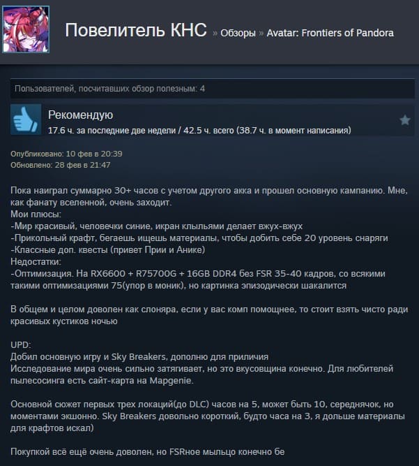 Отзывы об игре Avatar: Frontiers of Pandora: