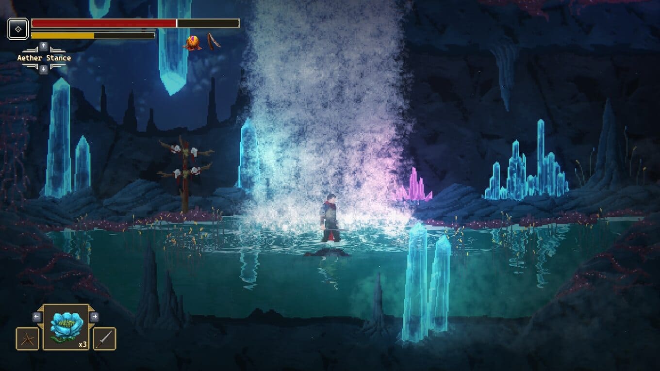 - Визуальный стиль сочетает выразительную пиксельную графику, детально прорисованные вручную локации и плавную ротоскопированную анимацию, придающую движениям персонажей реалистичность.