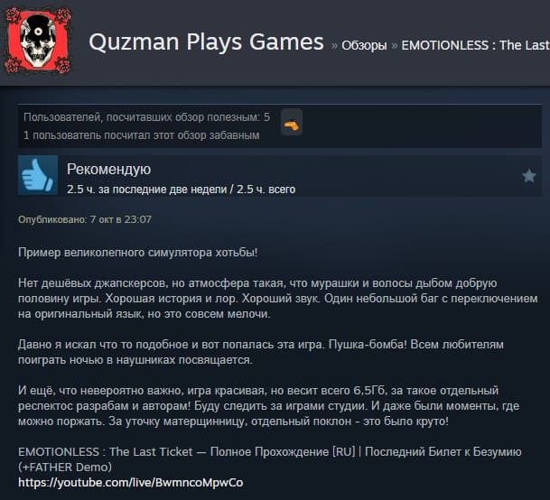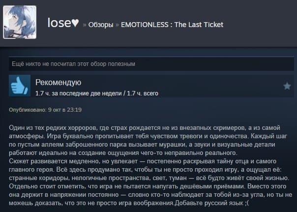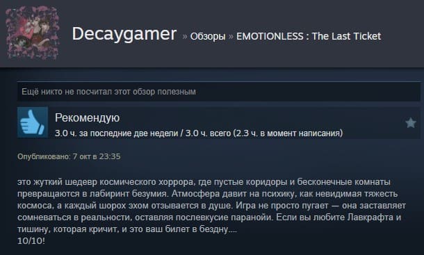 Отзывы об игре EMOTIONLESS: The Last Ticket: