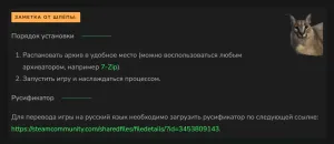 Для перевода игры на русский язык необходимо загрузить русификатор по следующей ссылке: https://steamcommunity.com/sharedfiles/filedetails/?id=3453809143.
