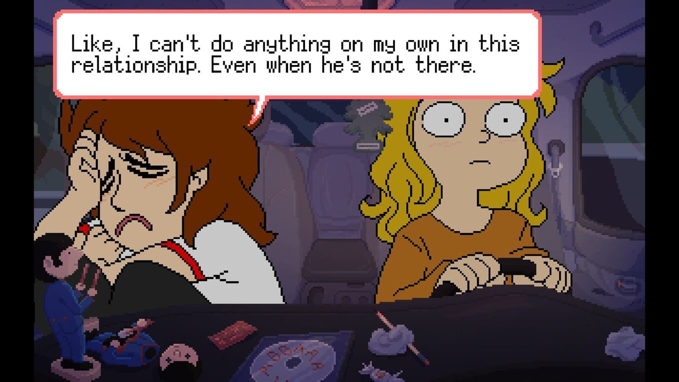 - Используется необычная система взаимодействия: вместо привычного инвентаря героиня собирает темы для разговоров и наблюдения из повседневной жизни.