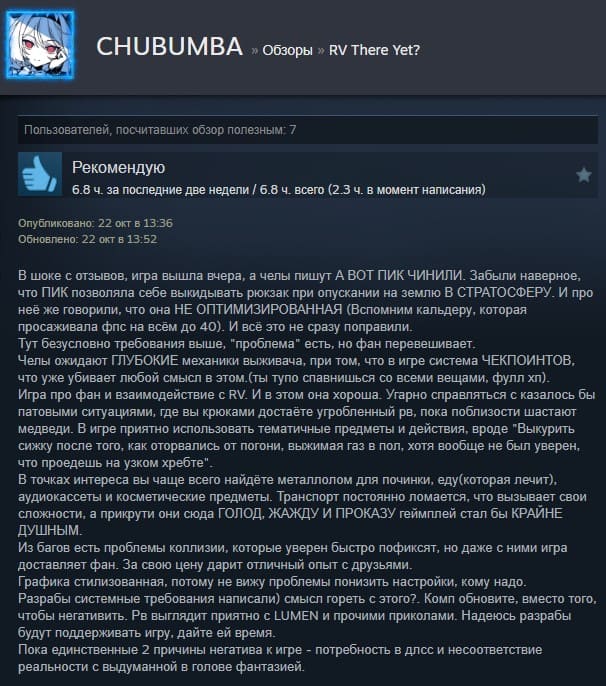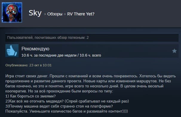RV There Yet? – игровой проект, представляющий собой настоящее испытание на выживание в суровой долине Мабуттс, где каждый поворот может стать последним. После внезапного обхода основного маршрута компания друзей оказывается отрезанной от цивилизации и вынуждена пробиваться через дикие, непредсказуемые земли, где подстерегают болезни, ядовитые существа и голод. Чтобы добраться до спасительной трассы 65, им предстоит защищать свой дом на колесах, поддерживать его в рабочем состоянии и следить за запасами – от бургеров до жизненно важных антидотов.
