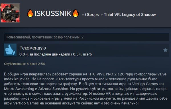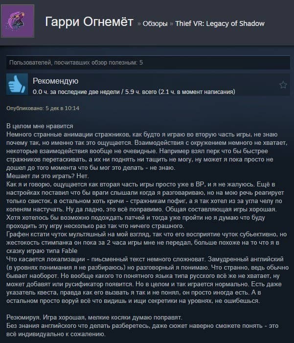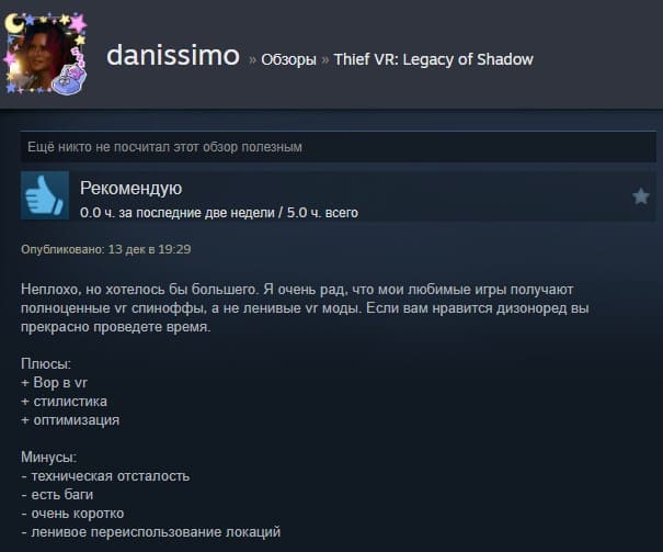 Отзывы об игре Thief VR: Legacy of Shadow: