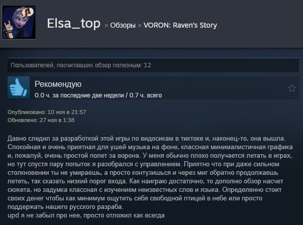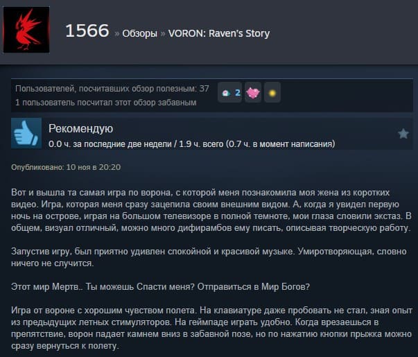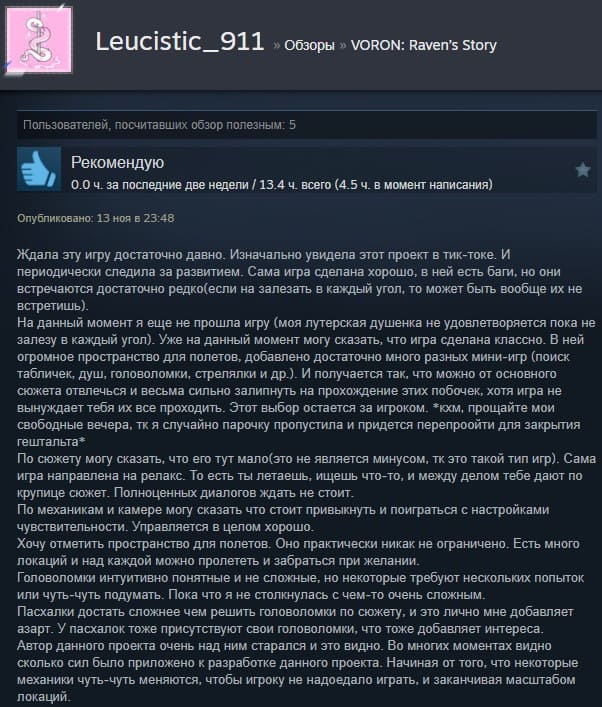 Отзывы об игре VORON: Raven’s Story: