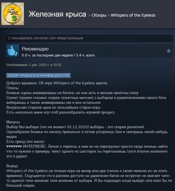 Отзывы об игре Whispers of the Eyeless: