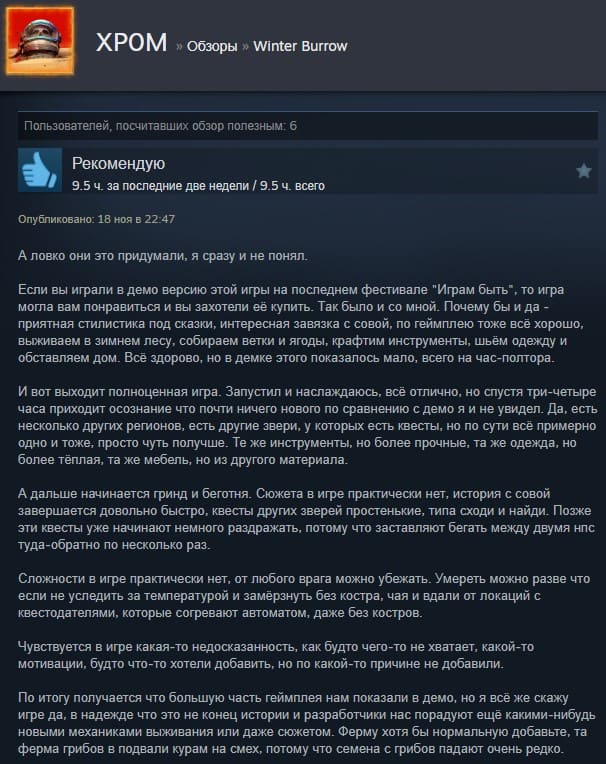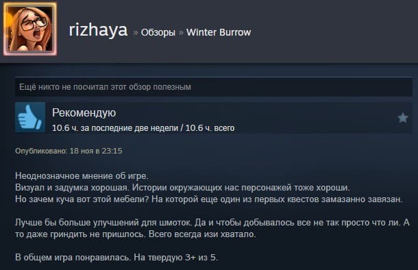 Отзывы об игре Winter Burrow:
