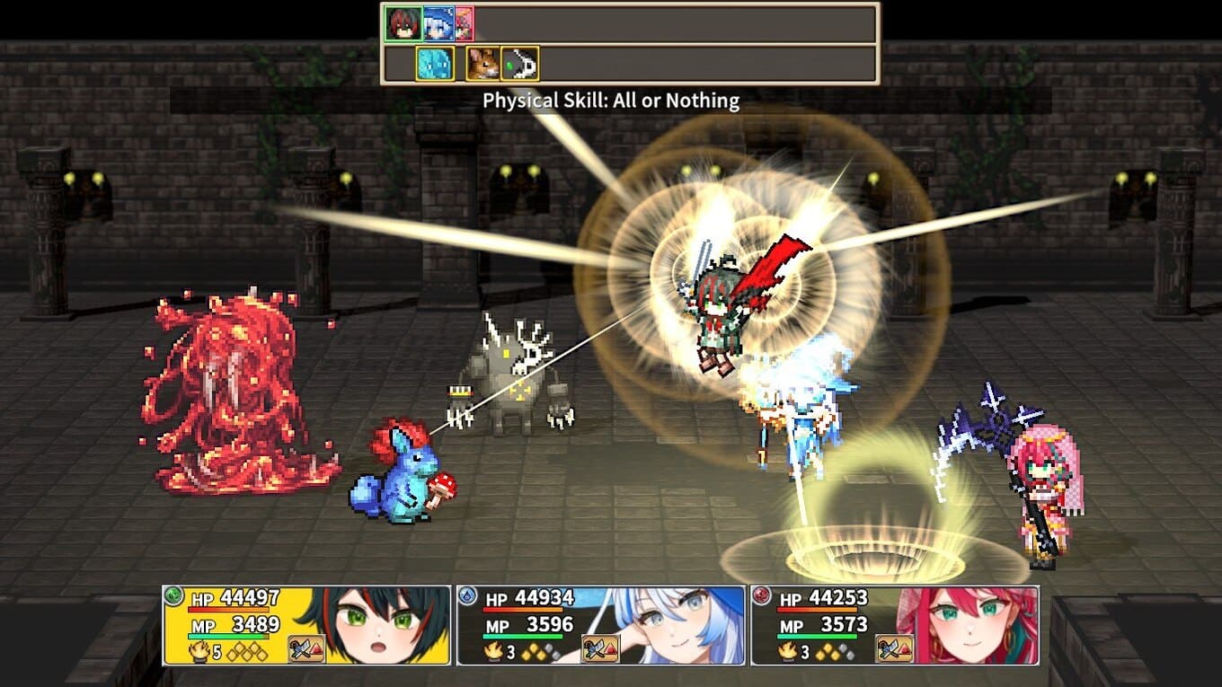 - Экспериментируйте с расстановкой отряда, стихиями, экипировкой и пассивными умениями, подбирая оптимальные комбинации для каждой формы;